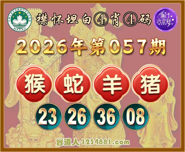 057期:【襟怀坦白】 ♥️④肖④码♥️【猴蛇羊猪】【23.26.36.08】开:猴23准