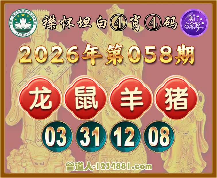 058期:【襟怀坦白】 ♥️④肖④码♥️【龙鼠羊猪】【03.31.12.08】开:鼠31准