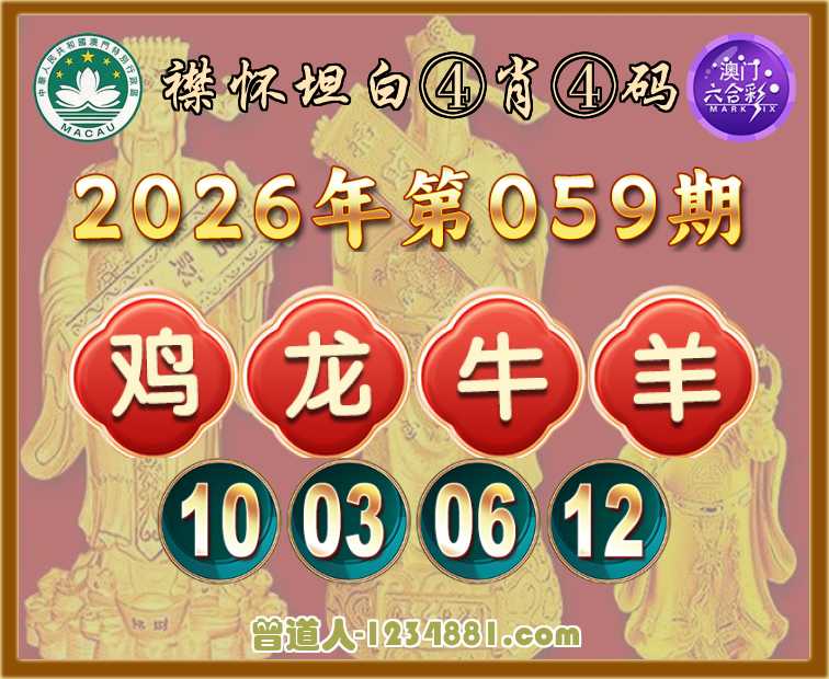 059期:【襟怀坦白】 ♥️④肖④码♥️【鸡龙牛羊】【10.03.06.12】开:鸡10准