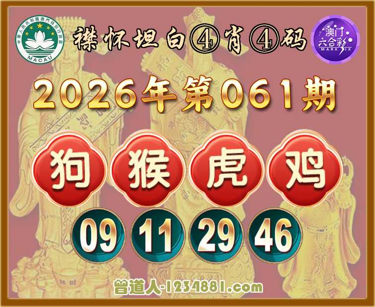 061期:【襟怀坦白】 ♥️④肖④码♥️【狗猴虎鸡】【09.11.29.46】开:虎29准