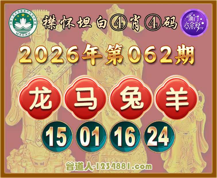 062期:【襟怀坦白】 ♥️④肖④码♥️【龙马兔羊】【15.01.16.24】开:羊24准